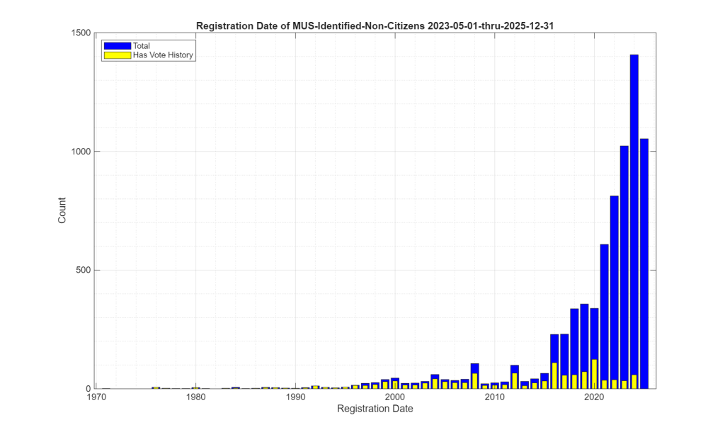 Non-citizen registrations with previous voting history in VA election data – update Jan 2026